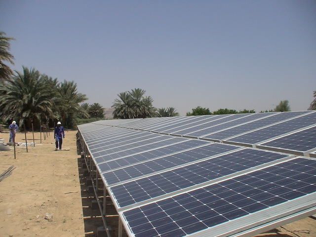 مضخة مياه بالطاقة الشمسية بقدرة إجمالية ( 15 ) كيلو وات، بإجمالي إرتفاع ( 45 ) متر